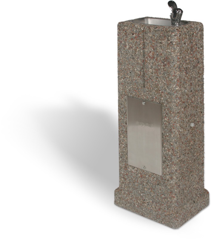 Vandalskyddad dricksfontän i gjuten armerad betong med exponerad sten.