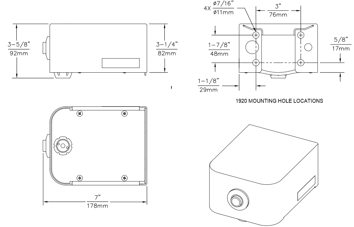 Pneumatisk tryckknapp och bottenplatta har vandalskydd och säkerhetsskruv.