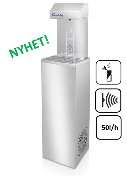 Vattenautomat med sensoraktiverad kran som är Idealisk för fyllning av flaskor, karaffer eller glas. Hölje i spegelblankt rostfritt stål och invändig stomme i rostfritt stål.